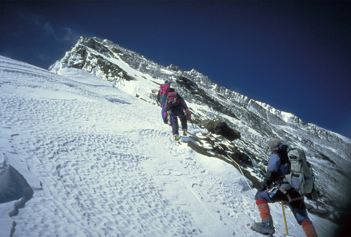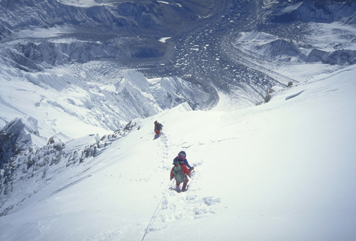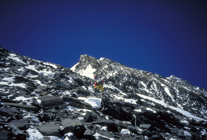 第1バットレスへ向かう マカルー(8,475m)、チョモロンゾ(7,816m)とカンシュン氷河 第4キャンプを見下ろす 第2バットレス ヒマラヤひだ カンシュンリッジ 第1バットレス上部のガレたルート 第4キャンプへ下る隊員
