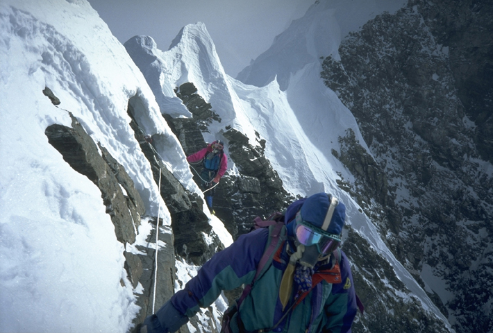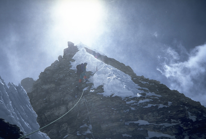 第1ピナクルを越え、第2ピナクルを工作する隊員